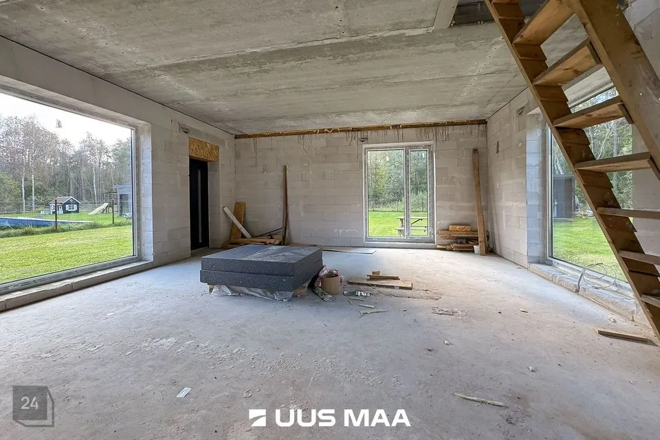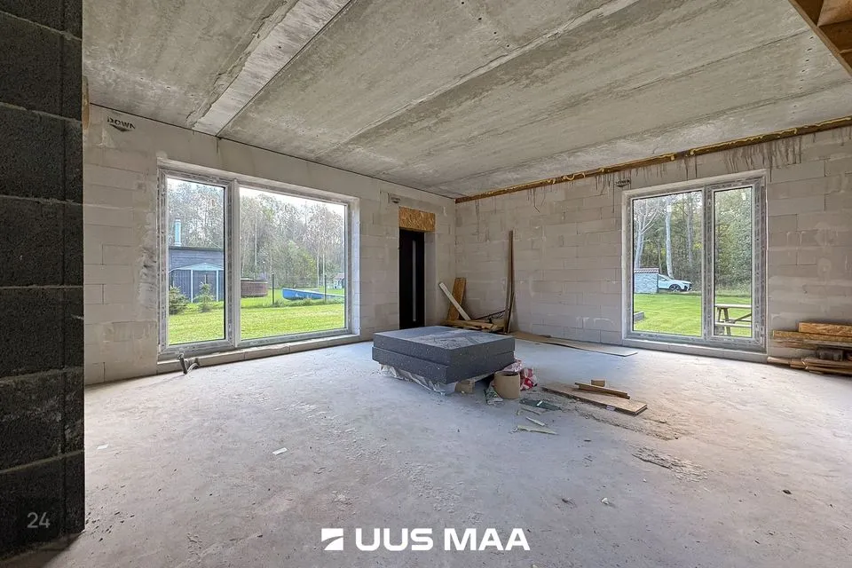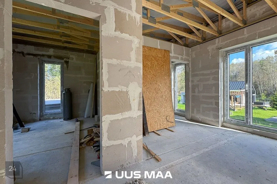 Hoone: suletud karp (katus, välisseinad, akna-/ukseavad; sisetööd tegemata).