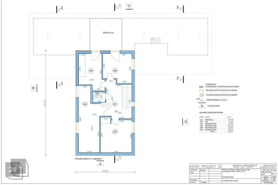 4 eraldi magamistuba, tualett, trepihall/ koridor, suur terrass pääsuga kahest magamistoast.