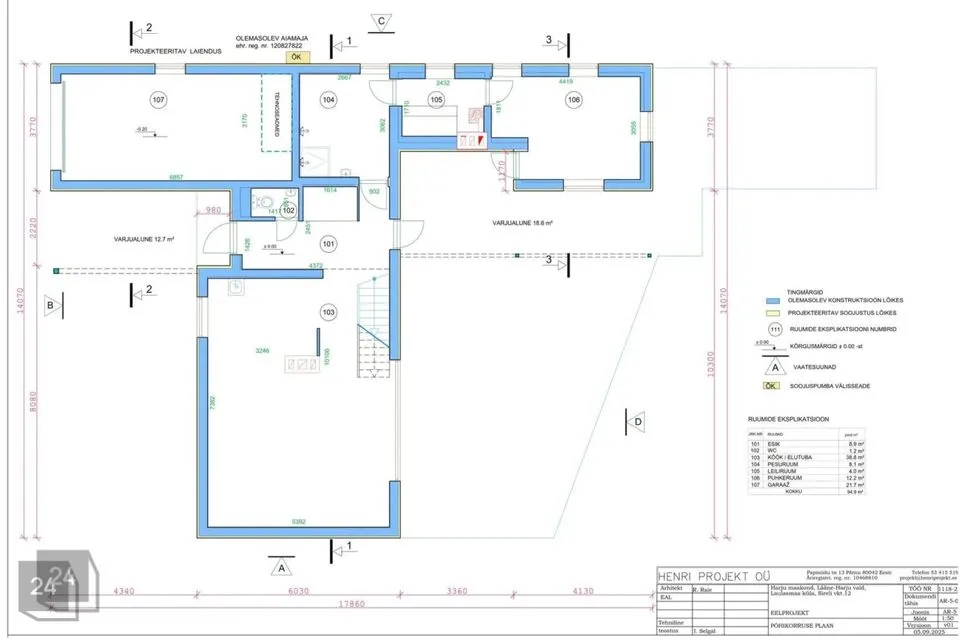 Horisonaalseteks kandetarinditeks puittalad. Väikeplokkidest välisseinad, mis on soojustatud 50 mm vahtpolüstüreenplaadiga.
