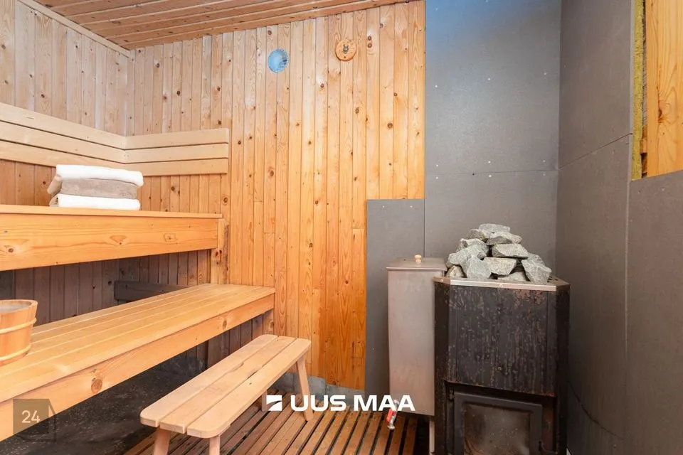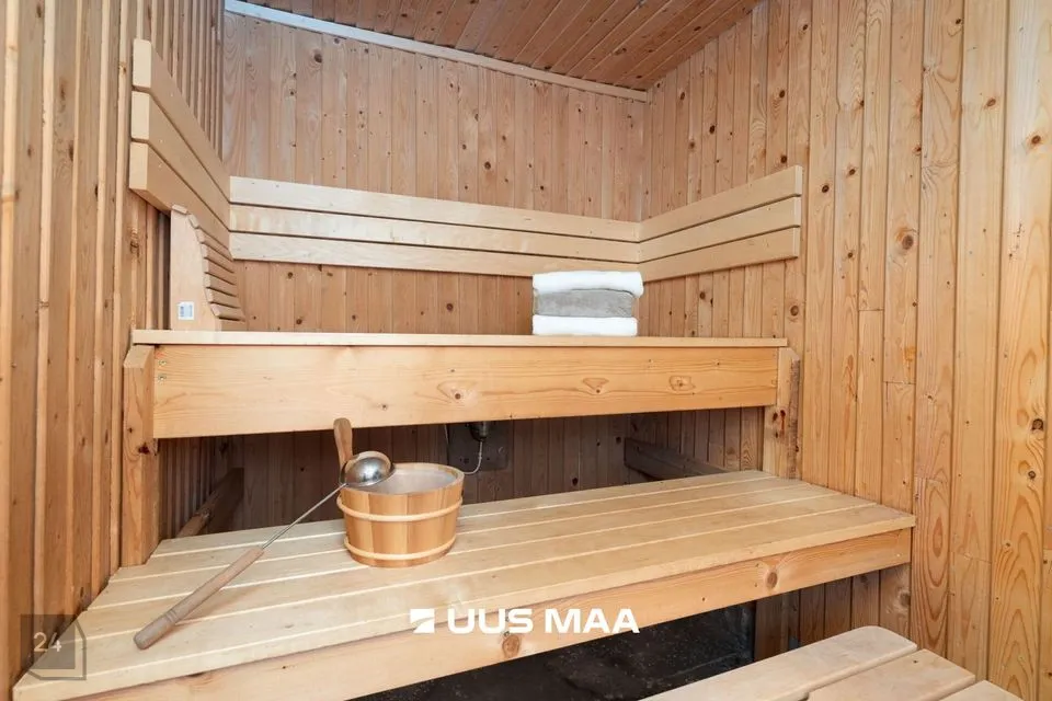 19 m² klassikaline puuküttega saun kauni vaatega põllule.