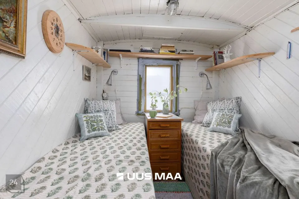 15 m² külalistemaja (endine metsniku haagis) – hubane võimalus külaliste majutamiseks.