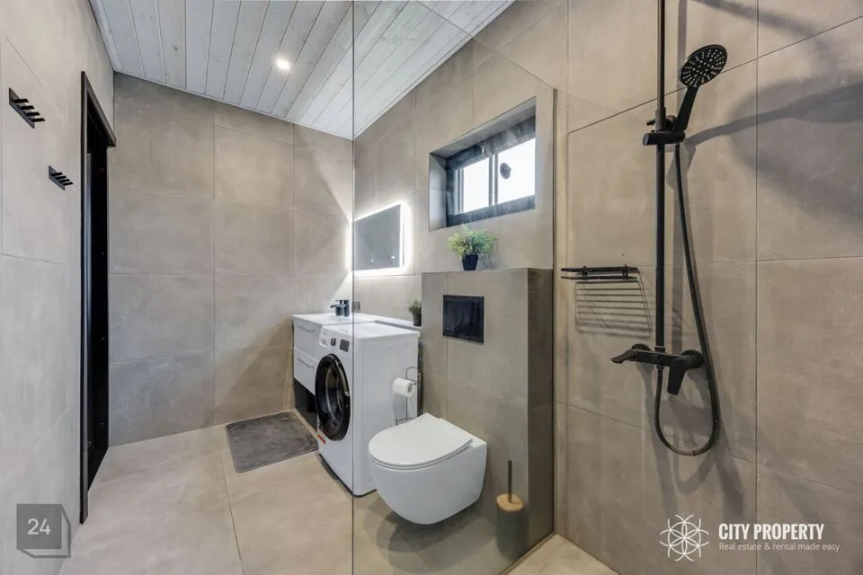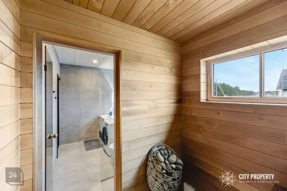 * Vannituba/WC/saun - elutoast pääseb dušinurgaga vannituppa; sauna on paigaldatud HUUM-keris ja puldiga reguleeritav valgusefektide-süsteem.