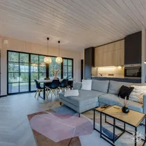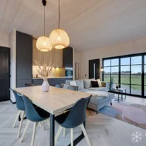* Elutuba koos avatud köögiga ja avara pere-söögilauaga, kust pääseb maja kolmel suunal ümbritsevale terrassile