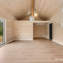 Siseviimistluses on kasutatud valgeks vahatud laudist ja heledat saareparketti, mis loovad ruumidesse hubasuse ja valgusküllase õhkkonna.