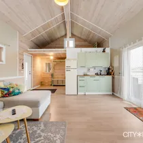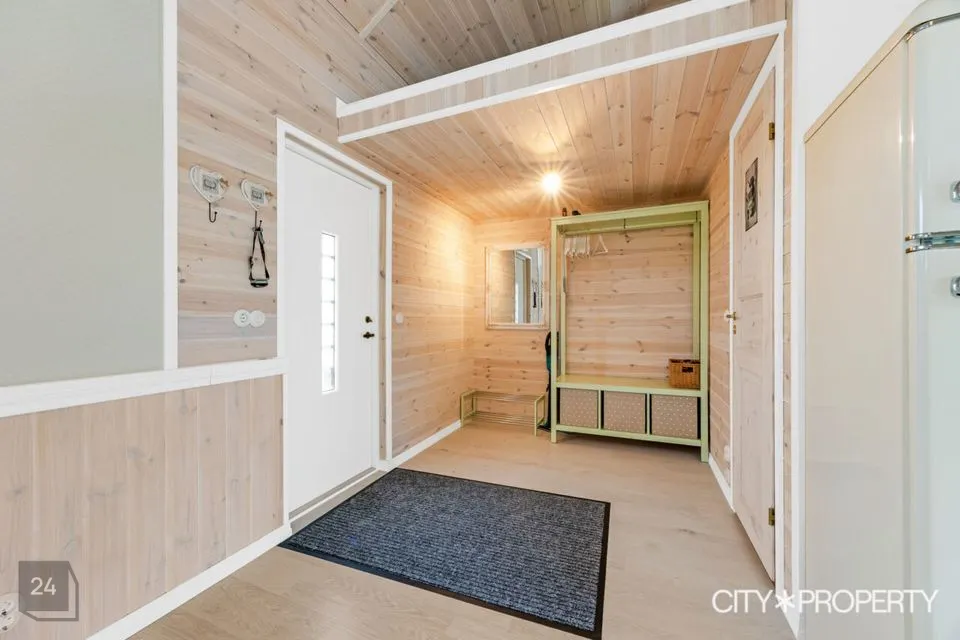 Siseviimistluses on kasutatud valgeks vahatud laudist ja heledat saareparketti, mis loovad ruumidesse hubasuse ja valgusküllase õhkkonna.