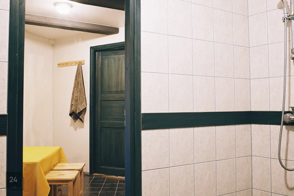 leiliruum; puiduküttega keris, pesuruum; kaks dušši