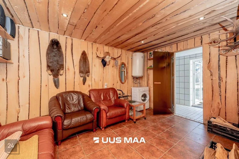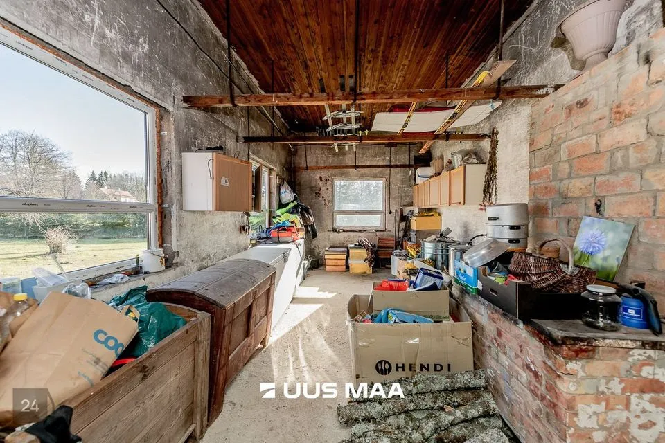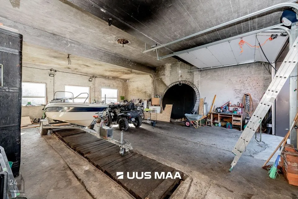 GARAAŽ+TÖÖKODA: 187.6 m2 suuruses garaaž/töökojas on võimalik hoiustada erinevaid sõidukeid või kasutada endale vastaval eesmärgil. Üks garaažiuks on elektriga ja teine manuaalne. Garaažis on 40L boiler. Hoone katusele on paigutatud päikesepaneelid. Katus laseb vett läbi ehk uuel omanikul tuleks see ära vahetada.