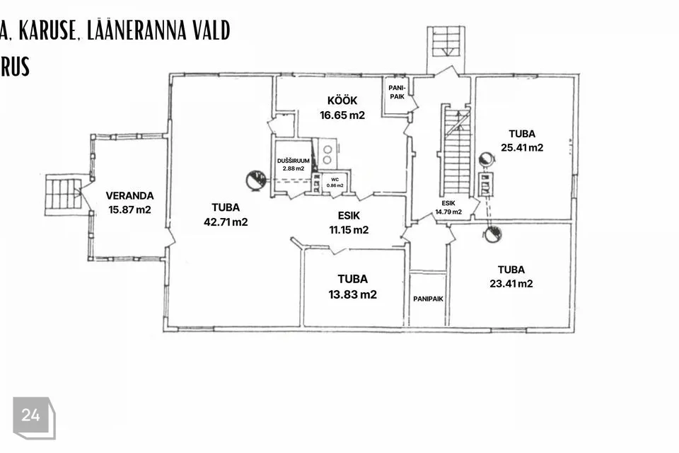 MÜÜA 8-TOALINE ELUMAJA KOOS KÕRVALHOONETE JA SUURE KINNISTUGA. PÄRNA, KARUSE KÜLA, LÄÄNERANNA VALD.