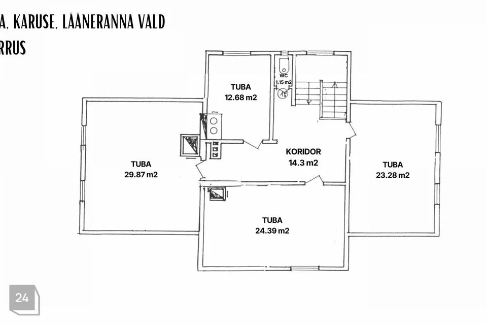 II korrusel renoveerimist vajav tuba, kaks magamistuba, kodukontor, WC.
