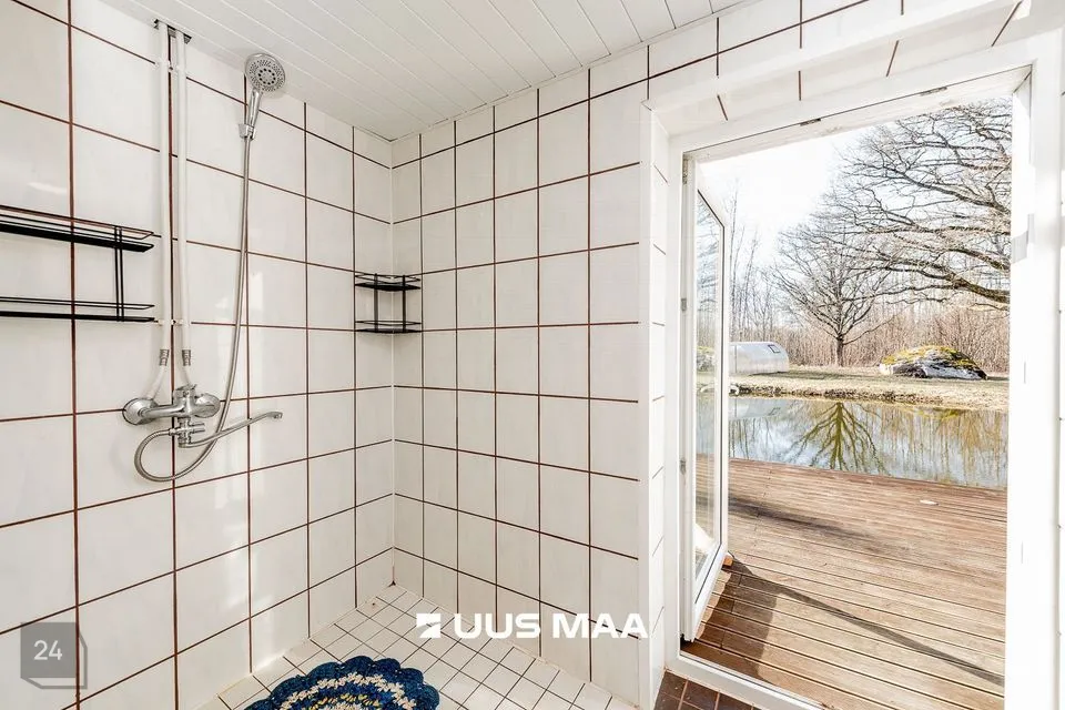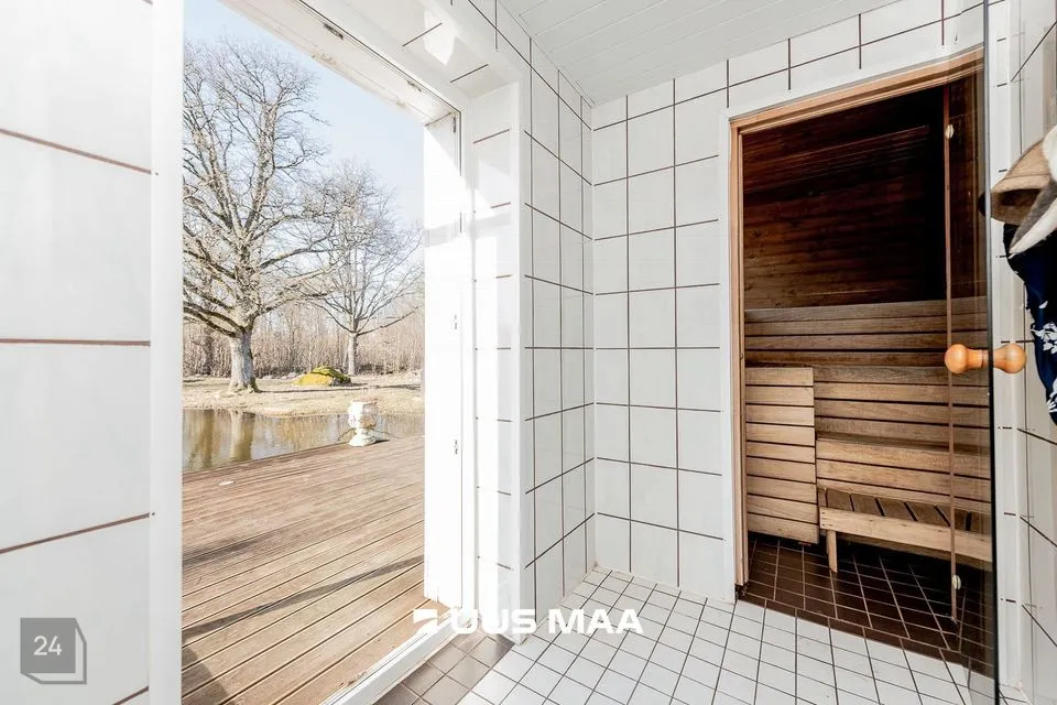 SAUN: Renoveeritud saunamaja. Saunamajas on eesruum, dušš, WC ja saun. Saunast on võimalik otse tiiki hüpata. Tiiki on ise sügavamaks tehtud. Samuti on saunamajaga ühenduses tünnisaun. Saunamaja kõrval on privaatne terrass. Saunas on 80L boiler.