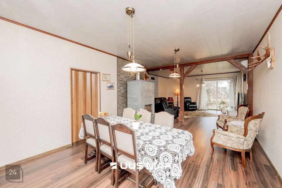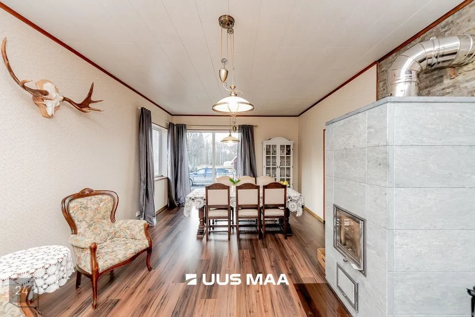 ELUMAJA: Esmane kasutuselevõtu aasta on 1947. Renoveeritud. 2 korrust. Hubane ja ruumikas. 8 tuba. 1 vannituba. 2 WC. Kohtküte ja lokaalküte. Maja kõrval terrass. Heas seisukorras. Soovi korral on võimalus II korrusel üks tuba renoveerida ja lõpuni viia. Majas on 80L boiler. 4 ahju ja õhksoojuspump. Põrandaküte on koridoris.