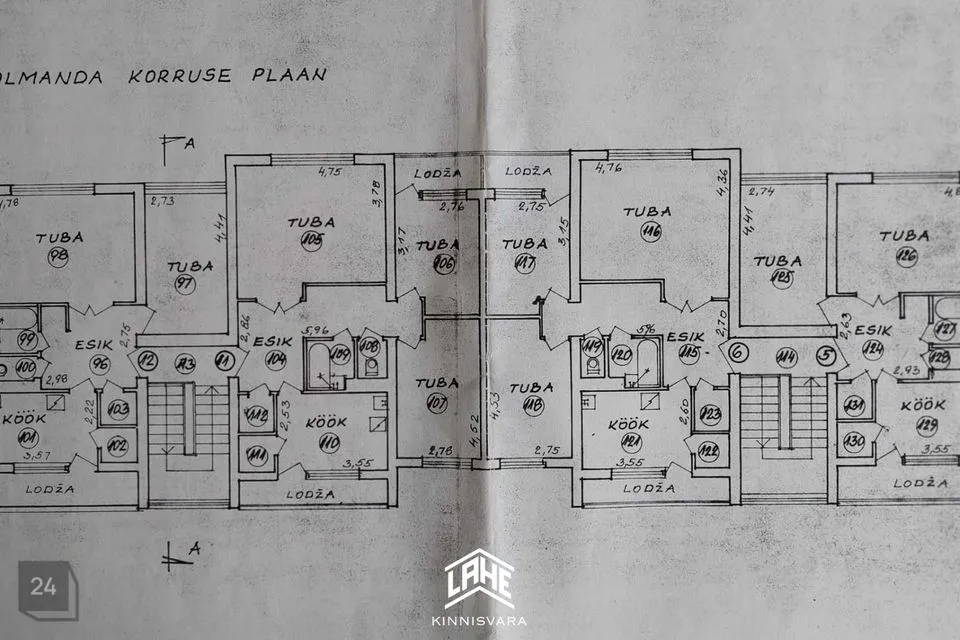 Просторный трехэтажный многоквартирный дом с двумя подъездами расположен в центре Лыпе, всего в 30 минутах езды от Пярну.