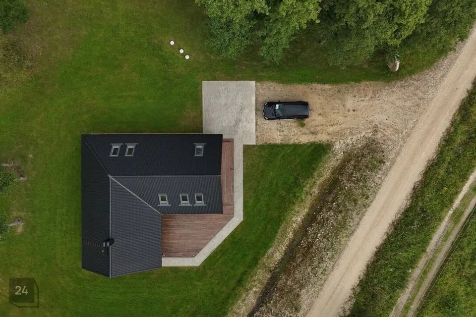 Mere ja metsa piiril olev elamu on projekteeritud kinnistu lõunapoolsele küljele. Tulevikus on võimalik juurde ehitada kuni neli abihoonet, pakkudes lisaruumi või võimalust täiendavateks projektideks.