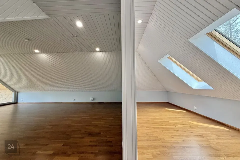 Teine korrus: 2 magamistuba, millest ühel on suur garderoob ja pääs merevaatega rõdule (10,9 m²), lisaks trepihall ning WC/duširuumi.