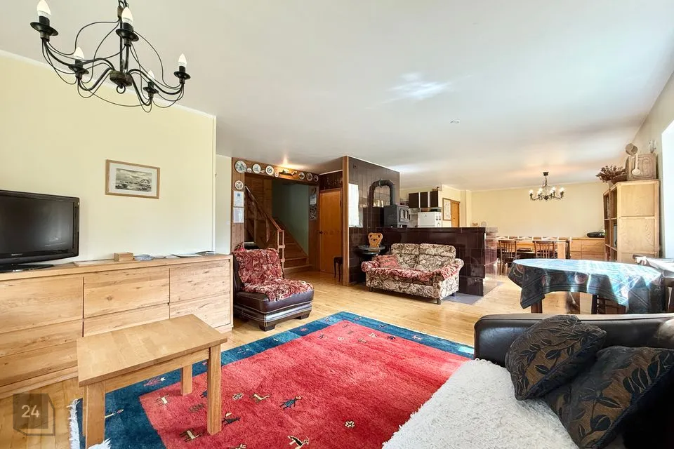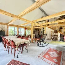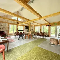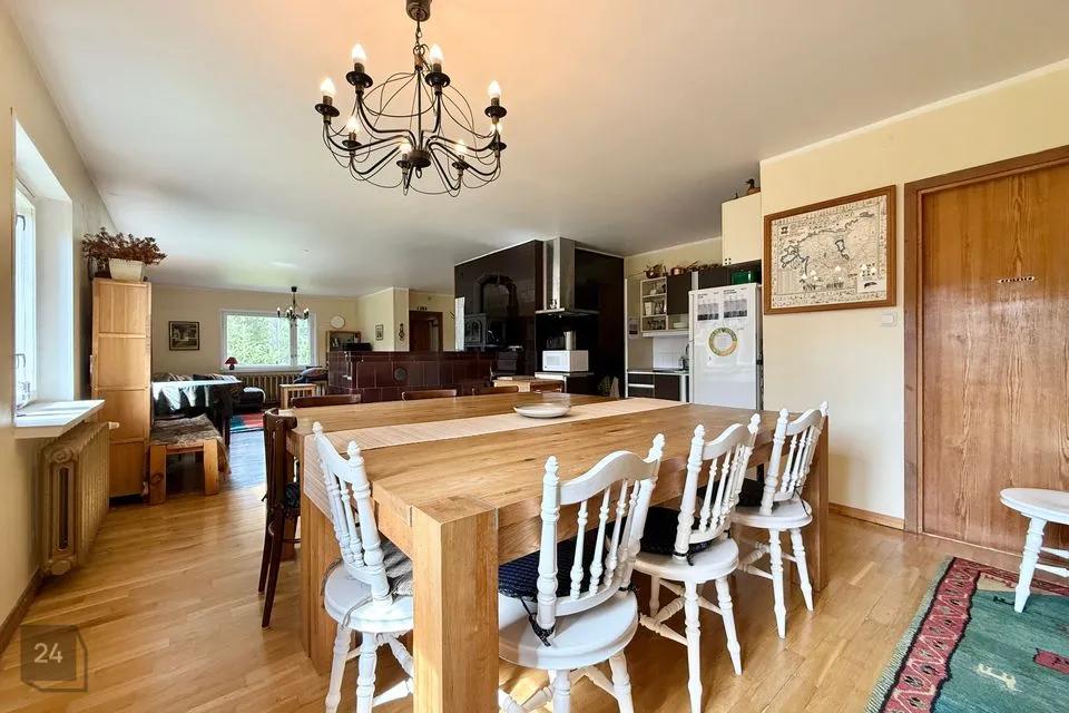 - Abihoone, kus on suur saal, profiköök, wc, üleval magamisruumid ja duširuum (suletud netopind 118,8m2)