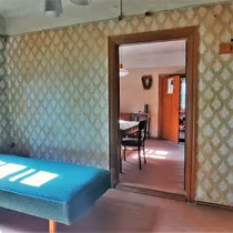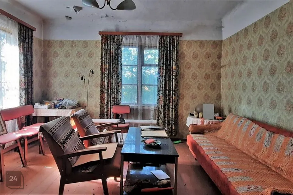 Log house with an area of 105m² containing six rooms, kitchen, dry toilet, and entrance hall.