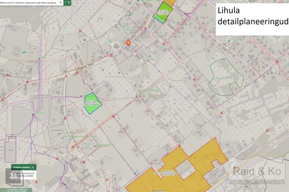 Kinnistu sihtotstarve 60% elamumaa ja 40% ärimaa. Ligi 3/4 kinnistust on hoonestamata, õuemaa 3162 m², muu maa 20138 m². Tehtud DP eskiisplaan elamukruntideks jagamiseks, detailplaneeringut pole alustatud.