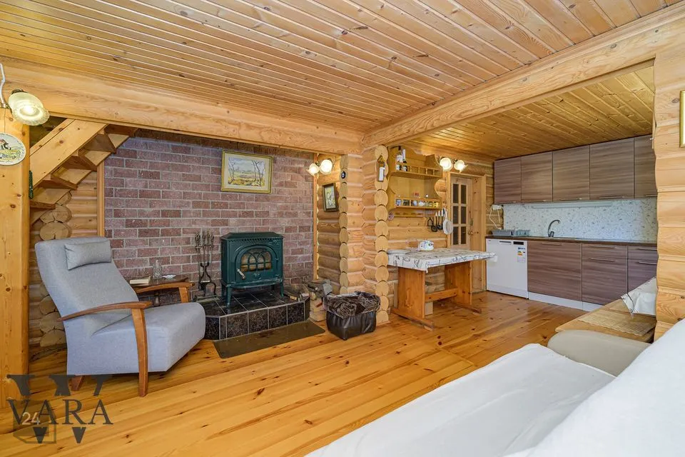Palkmaja saunaga, ehitatud 1994. aastal, pindala 75 m2, 3 tuba.