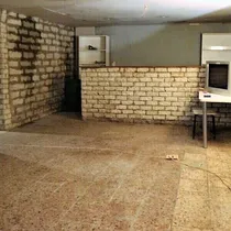 Massiivsed paekivist seinad, sileplekk katus, puitaknad, põrandad plaaditud.