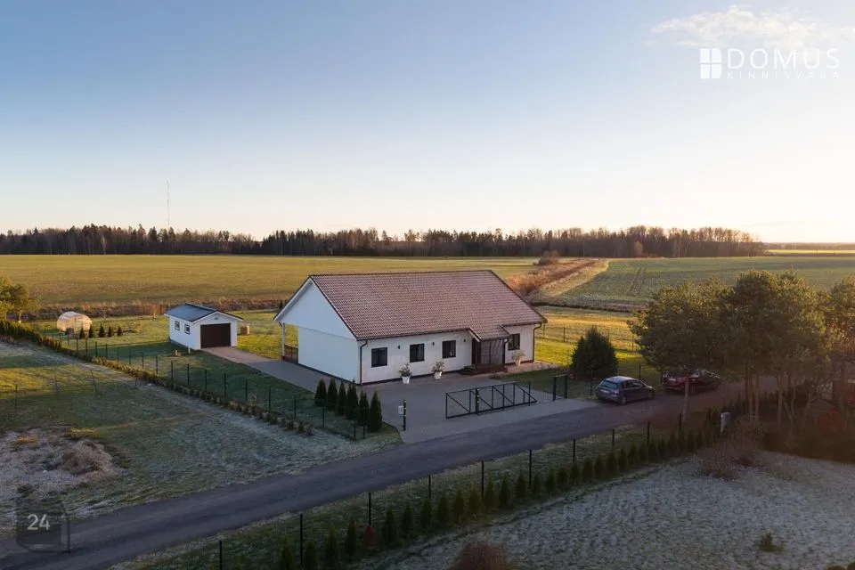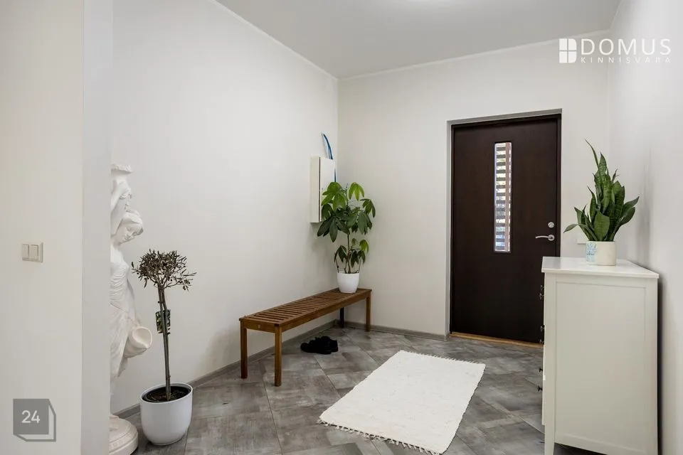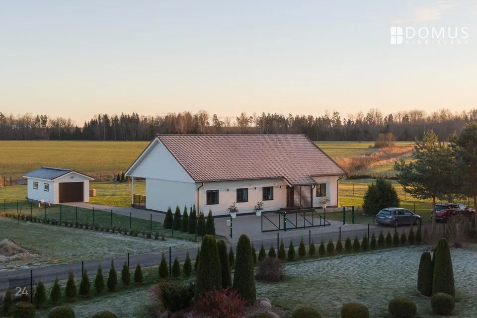 Kogu kinnistule on rajatud piirdeaed ja maja eest autost väljudes oma kaunima kontsakingaga juhatab kiviparkett sind tuppa nagu punane vaip Cannes’i festivalil