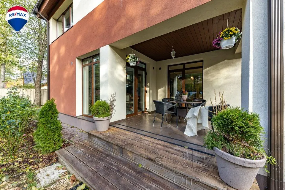 Maja eripäraks on suured aknapinnad ja funktsionaalse siseruumi jätk avatud terrassile elutoast ja köögist ning teise korruse rõdule kahest magamistoast.
