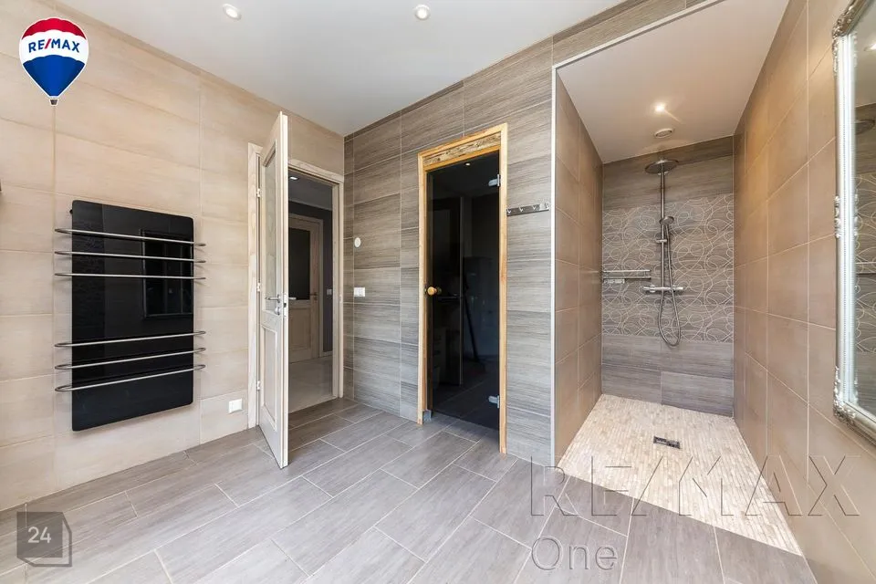 Elutoa nurgas on kamina valmidus.Lisaks paiknevad esimesel korrusel ka esik, saunaga pesuruum, sahver/majandusruum ning eraldi wc, garaaź ja tehniline ruum. Sauna leiliruum vajab projekti lõpetamist, keris on olemas.