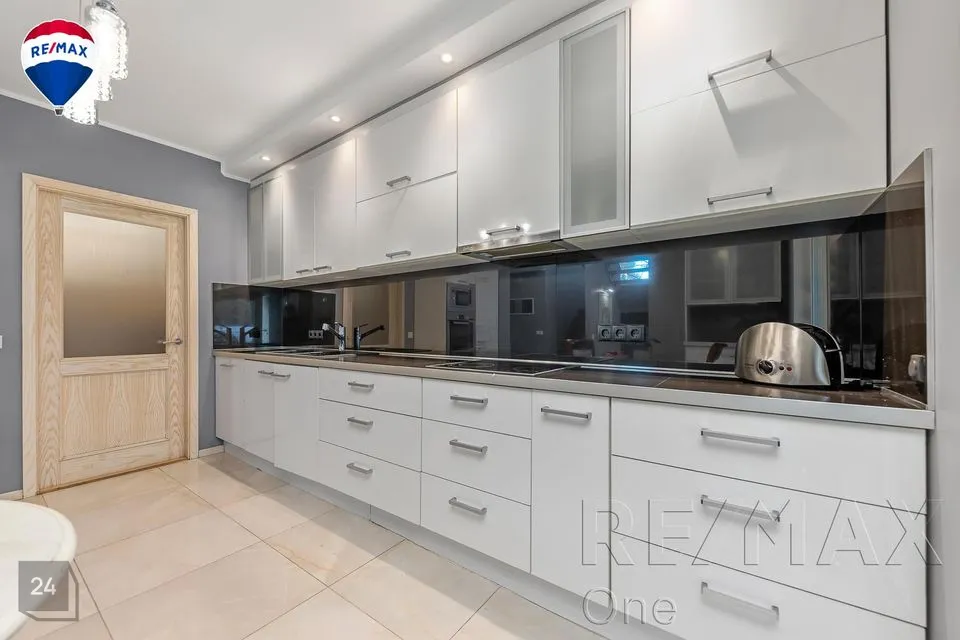 Köök on varustatud kogu vajaliku tehnikaga - integreeritud külmkapp koos sügavkülmikuga, ahi, keraamine pliit, mikrolaineahi. Olemas valmidus nõudepesumasina jaoks.