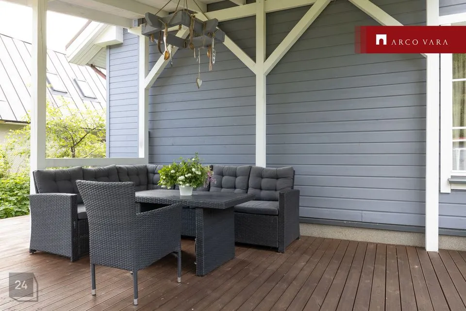 Maja ümbritseb imeline haljastatud krunt, kus õitsevad lilled ja kõrguvad puud, luues maalilise keskkonna, kus iga päev on nagu unenägu.