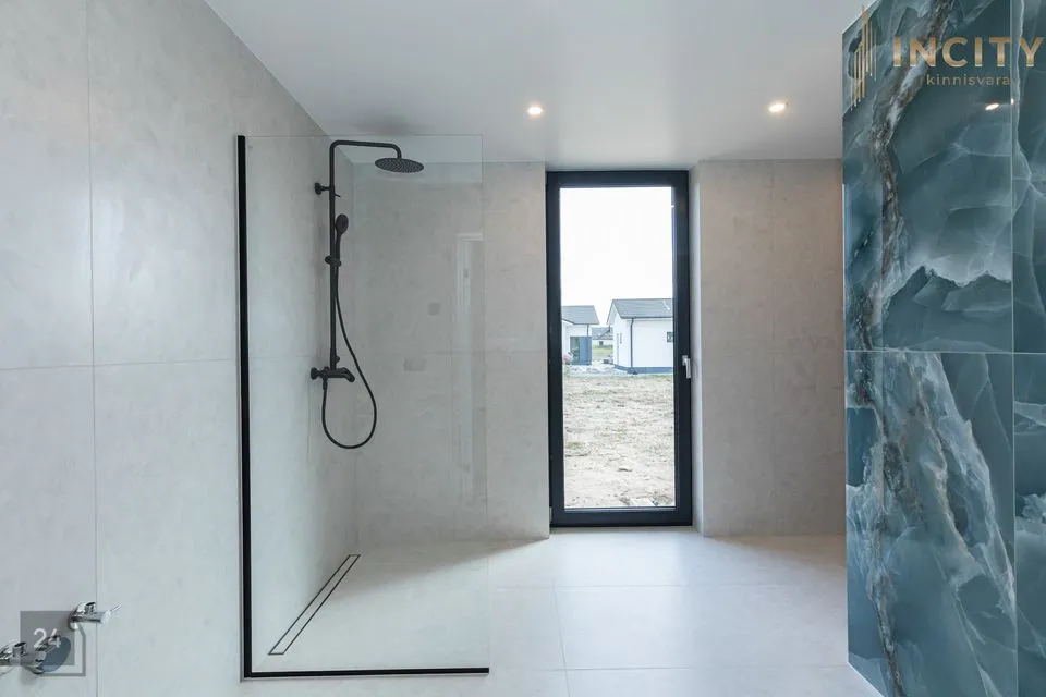 The single-storey residential house, to be completed in spring 2025, is located on a 1,345 m² property, which offers scenic views of Lake Maardu. The property is located on the eastern shore of Lake Maardu, along Maardu Manor Road, 1.1 km from Peterburi Road.