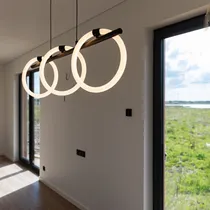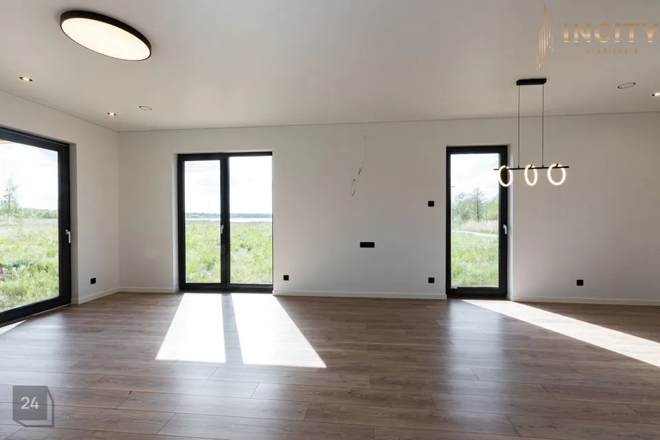 The interior decoration of the house uses bright colors and high-quality materials, which create the opportunity to design a unique home that meets your taste preferences. The spaciousness is achieved thanks to floor-to-ceiling windows. Gorgeous glass surfaces let natural light shine into the room and draw inspiration from the beautiful nature.