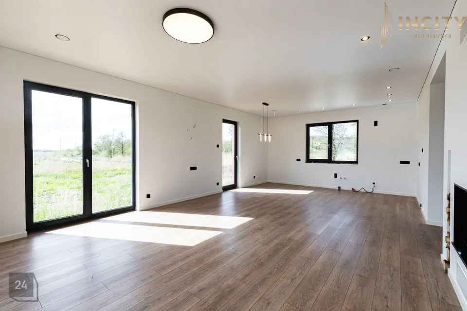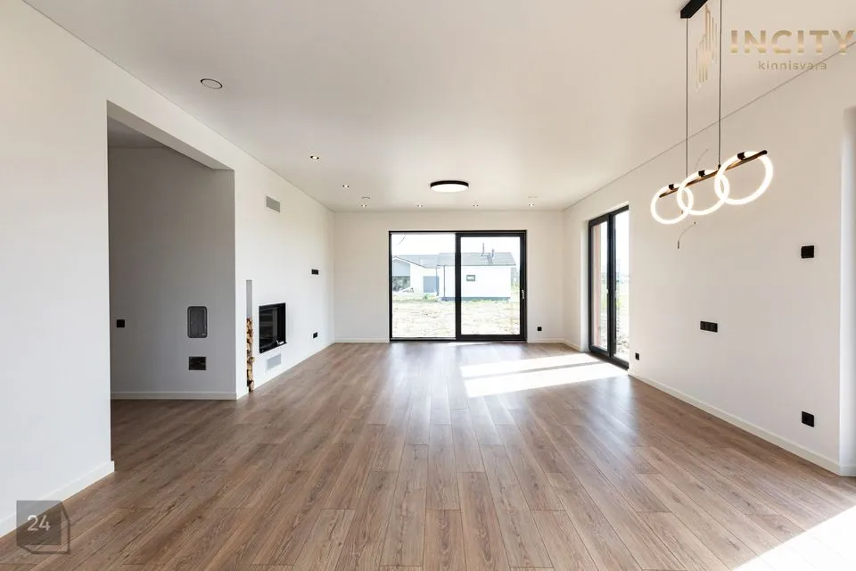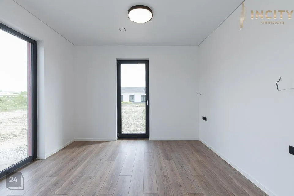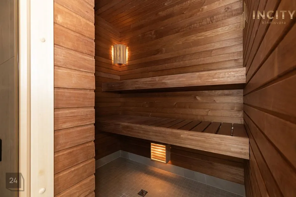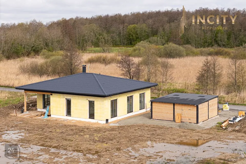The house has a kitchen + living room, 3 bedrooms, hallway, corridor, sauna, spacious bathroom, toilet, wardrobe and utility room. The living room has a fireplace. The living room and sauna lead to a spacious terrace, where you can relax after a steam bath, listen to birdsong, enjoy the fresh air and spend pleasant evenings with friends. The terrace size is 43 m2.