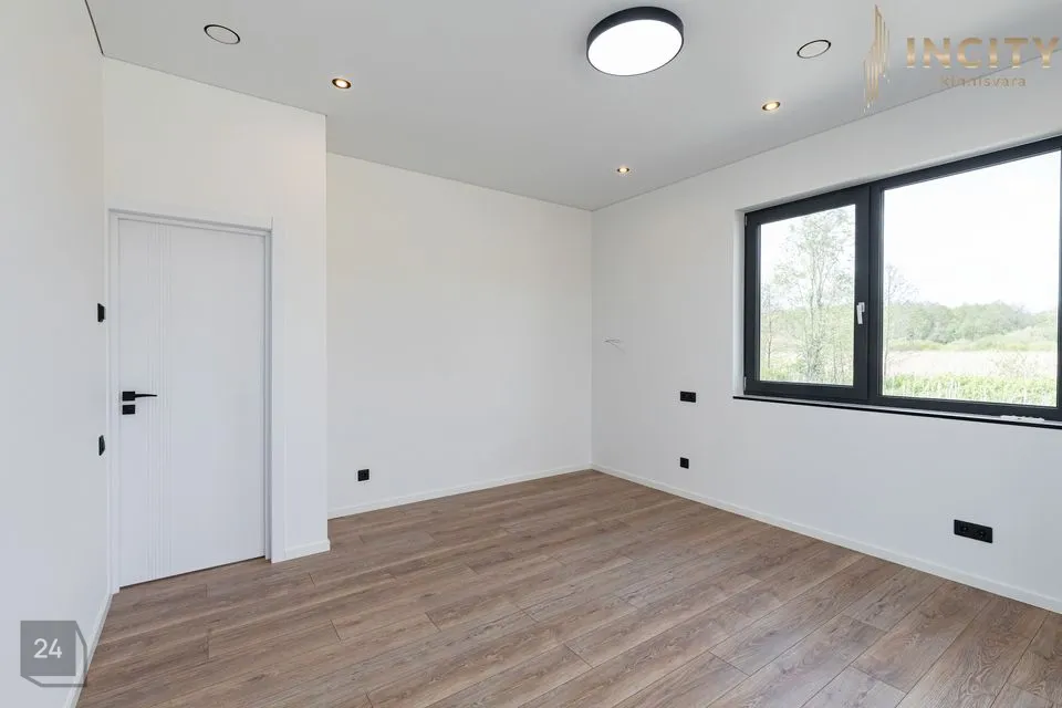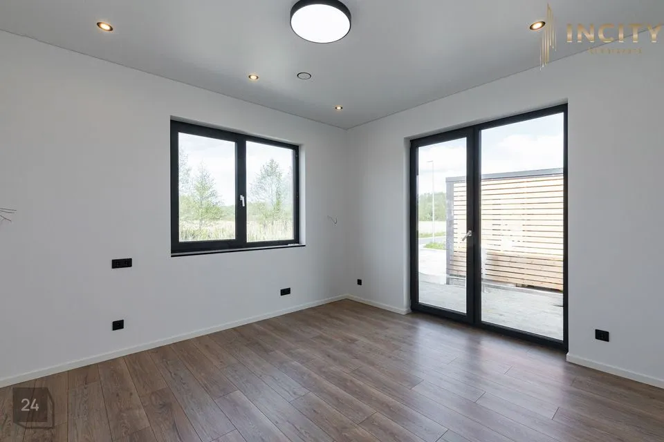 The four-room modern and uniquely designed house is spacious, with high ceilings and a spacious and well-thought-out layout.