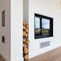 Residential building The heat supply is an air-to-water heat pump. The heat pump is located in the technical room. The building is heated with underfloor heating pipes, adjustable by room.