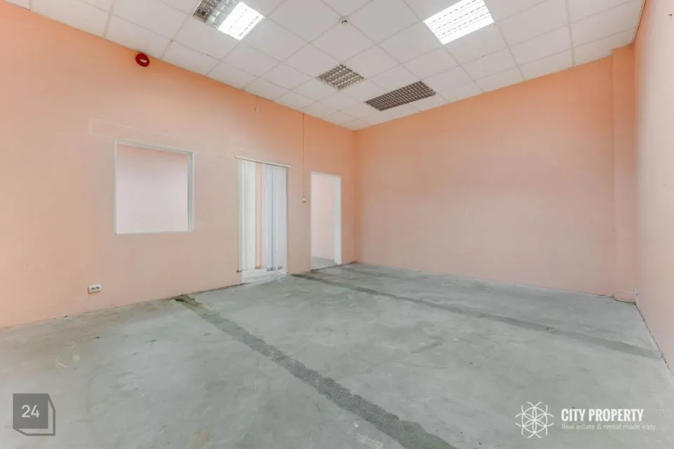 I korrus 60 m² kaubanduspinda, 45 m² laopinda ja lisaks erinevad abiruumid ning dušš ja tualett