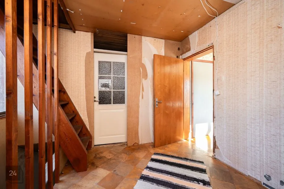 Kodu on kahe sissepääsuga, mis annab paindlikkuse ruumide kasutamisel. Alumisel korrusel asuvad köök, vannituba/wc, kaks läbikäidavat tuba ning magamistuba. Koridorist viib üks trepp alla avarasse keldrisse, teine aga ülemisele korrusele, kus on veel kolm tuba ja ruum uue vannitoa jaoks (kanalisatsioon on juba olemas). Lisaks leiad mahuka pööningu ning uuendatud tehnosüsteemid, nagu uus torustik ja elektrijuhtmestik.