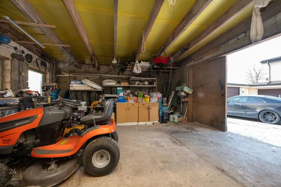 Garaaž/abihoone (156 m²) on ideaalne nii tehnikahoiuks kui ka näiteks töökojaks või hobiruumiks. Lisaks on kinnistul 25 m² puukuur.