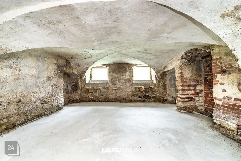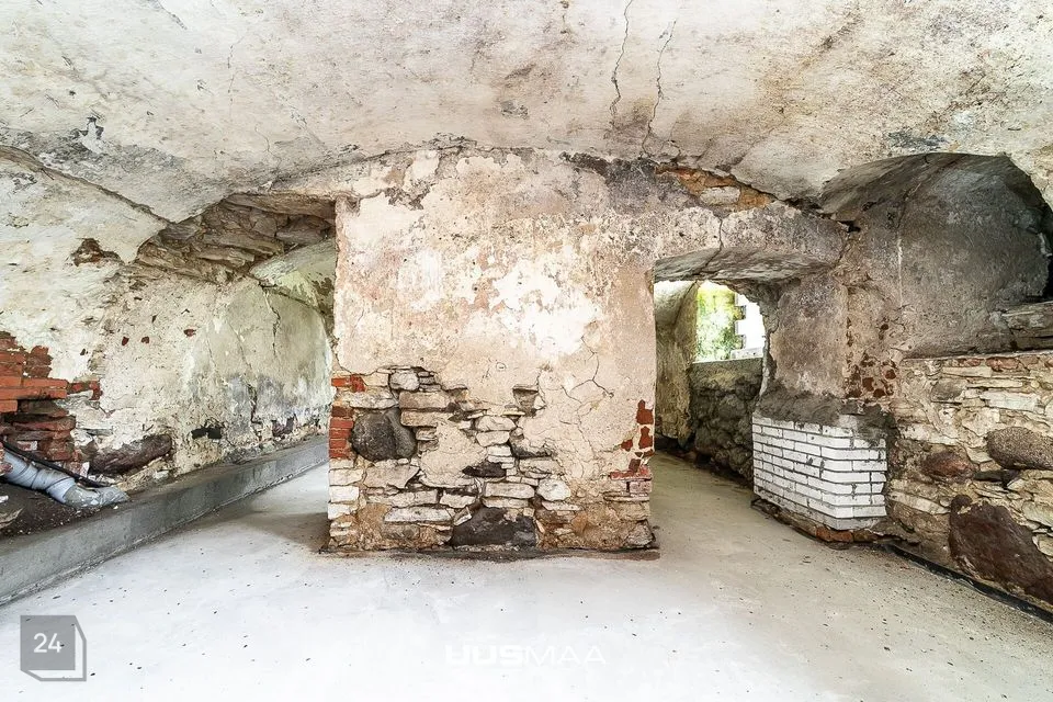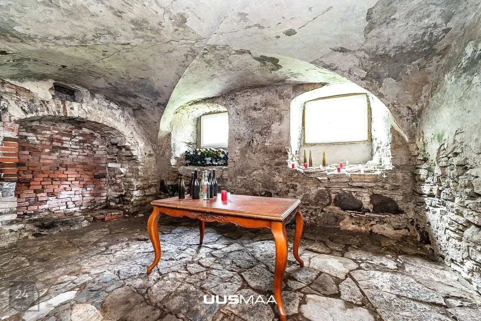 Kellarikerroksen huoneissa on upeat holvikatot.