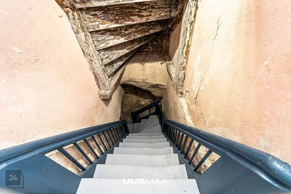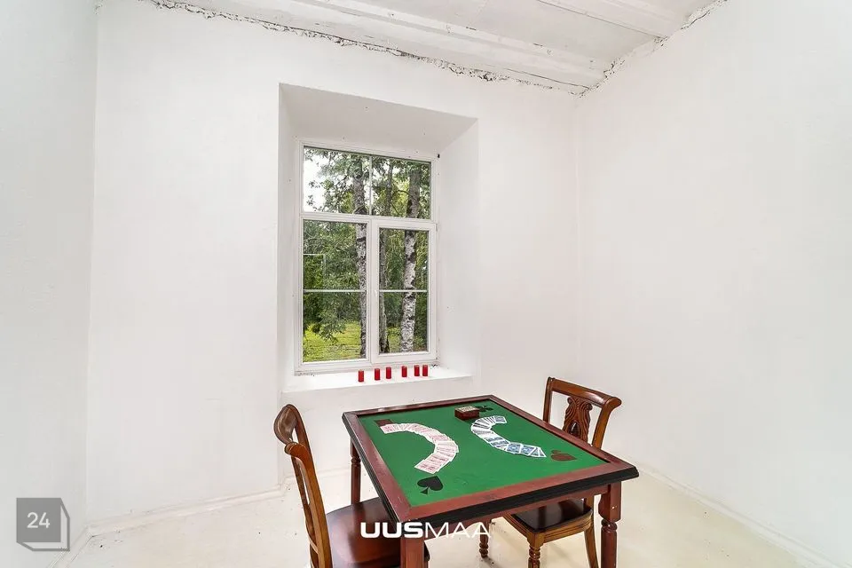 Pääkerroksessa on suuri sali ja 11 huonetta, joissa on rapatut seinät.