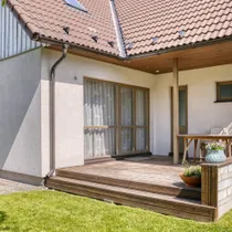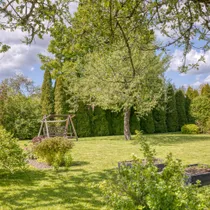 Hoovis on kandvad viljapuud ja -põõsad - õun, ploom, tikrid, sõstrad. Samuti on olemas maja mõlemal küljel väline veevõtukoht ning väga mahukas panipaik kõigi aiatööriistade, jalgrataste ja palju muu jaoks. Samuti on loodud juurdepäes toast otse tehnoruumi.