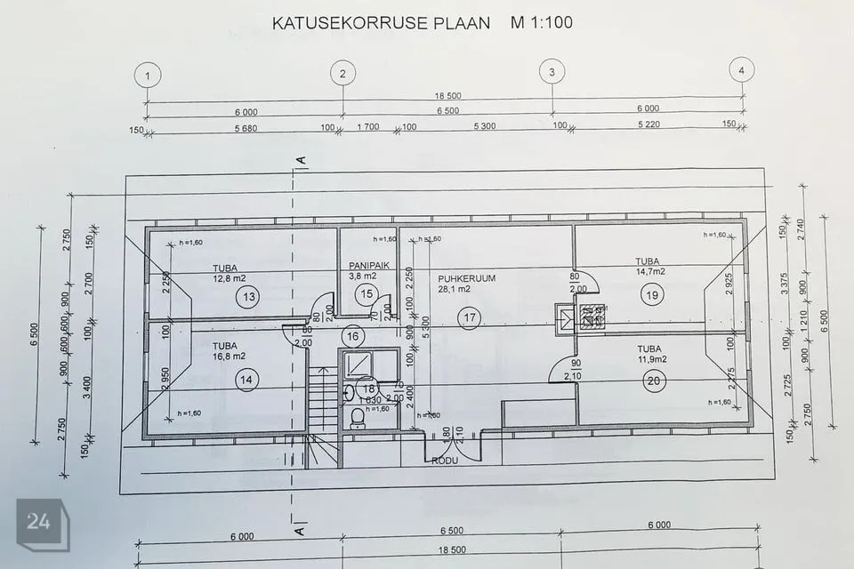 Esimesel korrusel on planeeritud köök-elutuba koos trepihalliga teisele korrusele, 5 magamistuba, duširuum koos wc-ga ja üks eraldi wc.