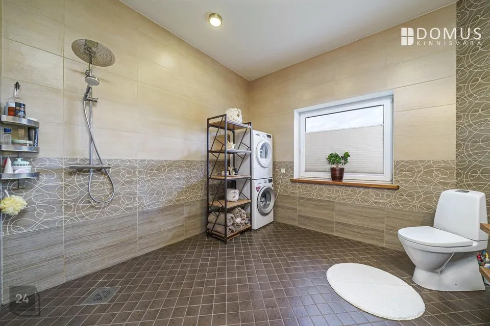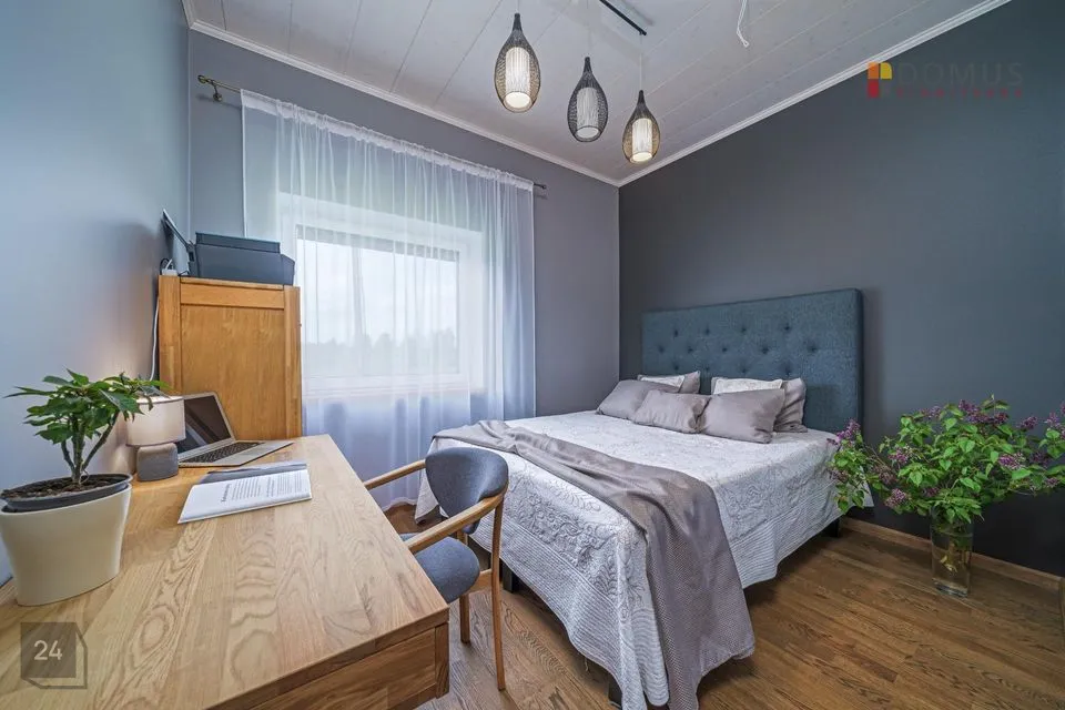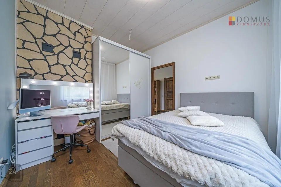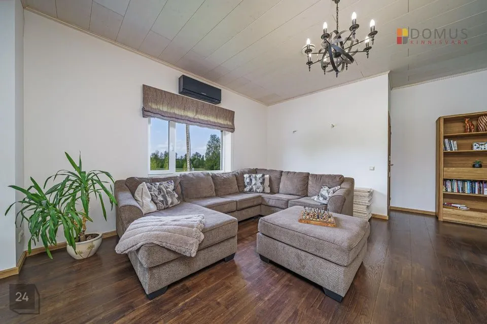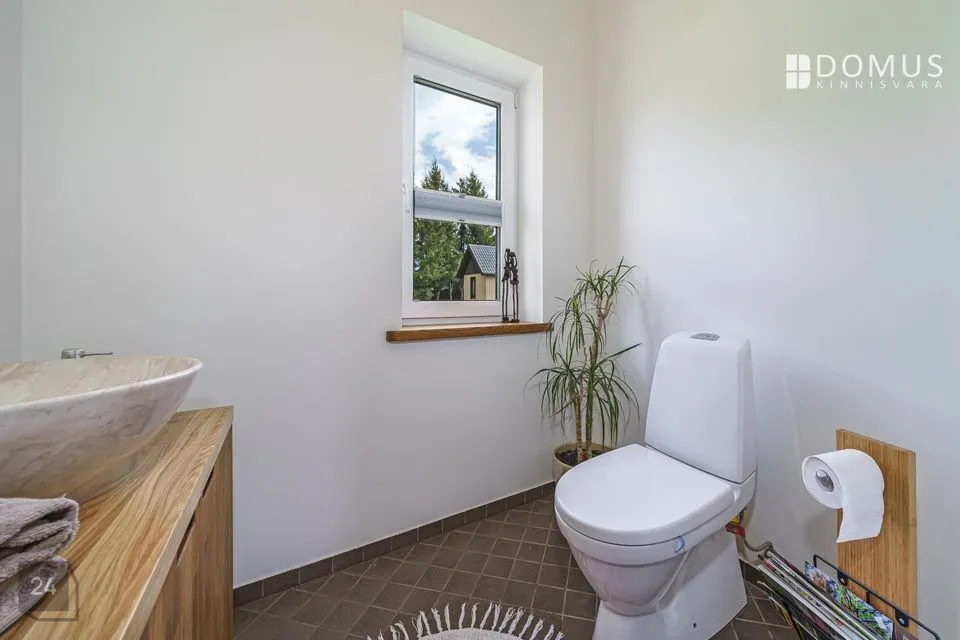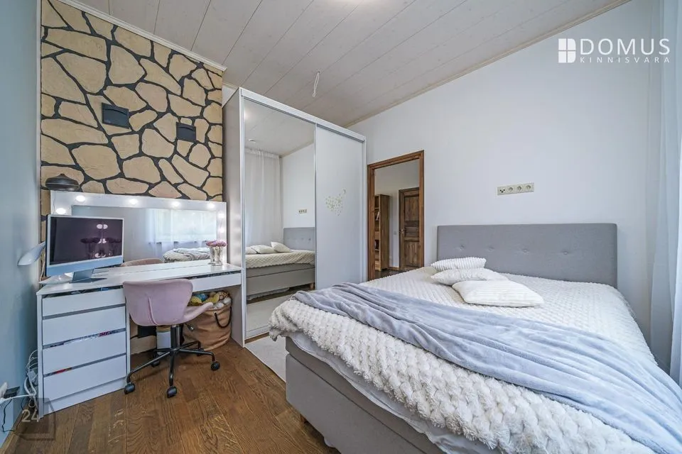 Mugav, väga hästi läbimõeldud planeeringuga, hubane ja valgusküllane maja, kus kokku 4 tuba, neist 3 magamistuba (12,3m², 11,5m², 9,6m²), elutuba (48,5m²), walk-in garderoob 6,3 m², dušširuum koos WC-ga ja eraldi ja WC.