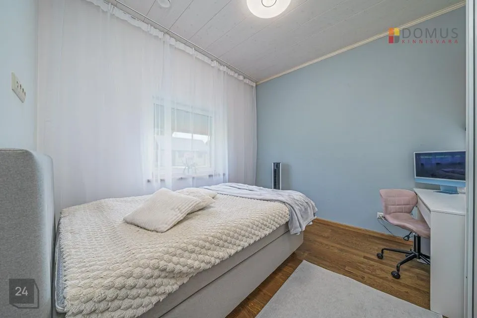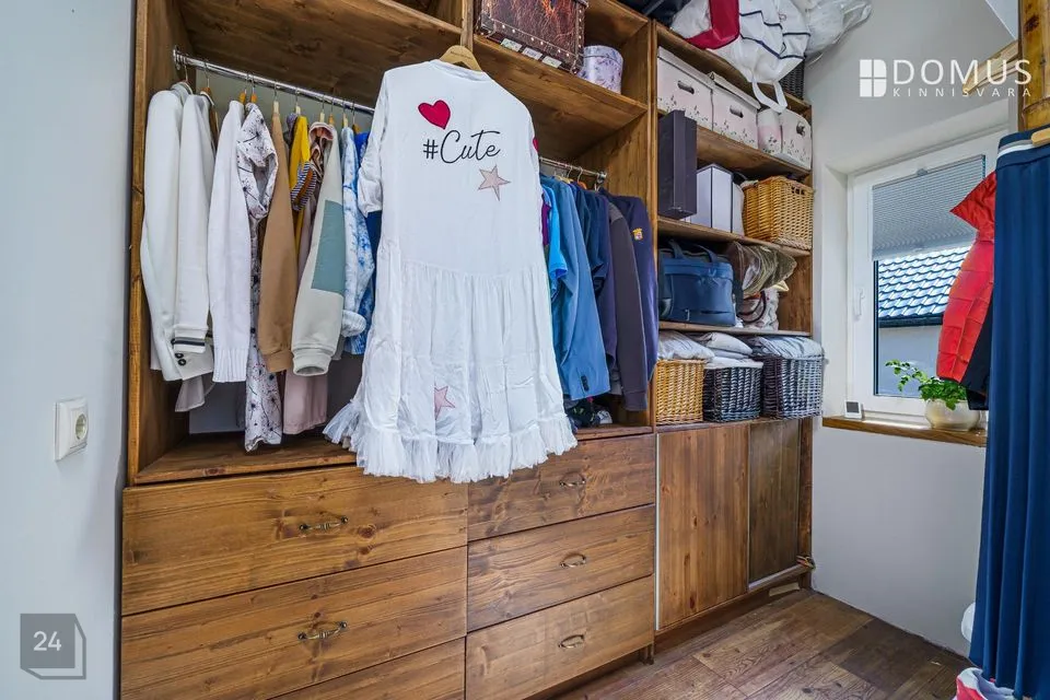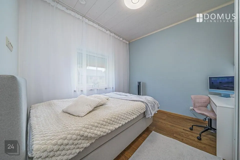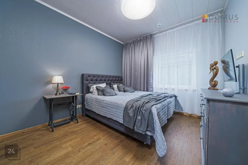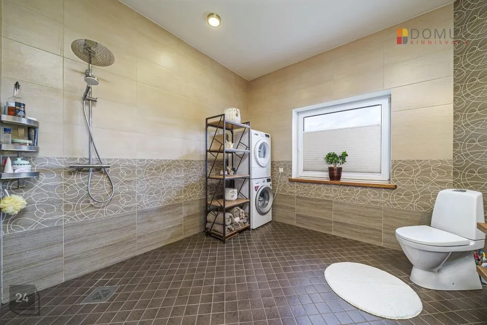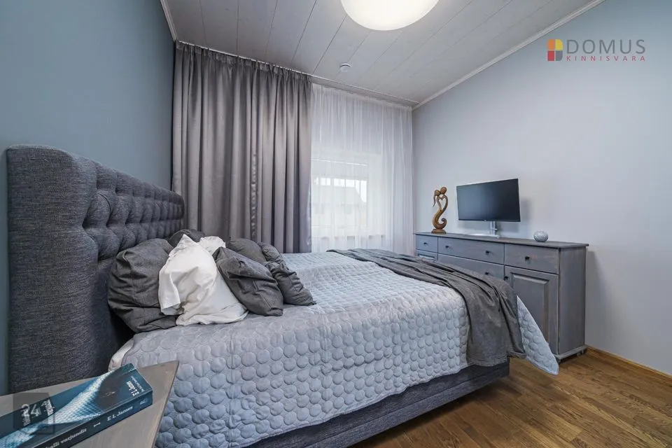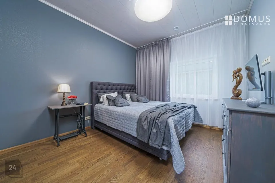 Mugav, väga hästi läbimõeldud planeeringuga, hubane ja valgusküllane maja, kus kokku 4 tuba, neist 3 magamistuba (12,3m², 11,5m², 9,6m²), elutuba (48,5m²), walk-in garderoob 6,3 m², dušširuum koos WC-ga ja eraldi ja WC.