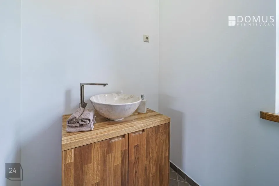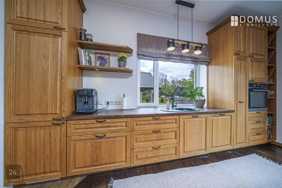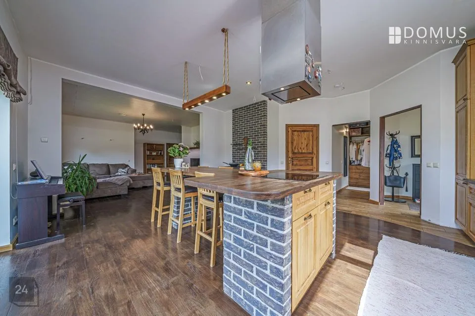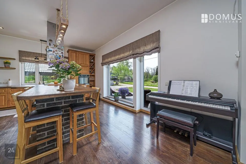 Selle kodu süda on kindlasti 48 m² suurune avatud elutuba - avar ruum, puupliit ja soojust salvestav kamin, mis loovad soojust ja õdusust igal aastaajal. Siin ei ole mitte lihtsalt köök, vaid unistuste köök – keskel saareke, mis ühendab pere ja sõbrad. Ja kui oled korra istunud massiivse tammepuust söögilaua taha, siis tahad sinna tagasi – ikka ja jälle.