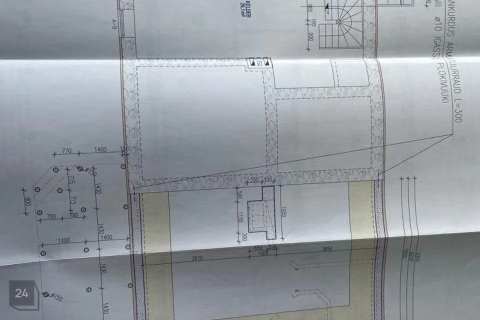 Vundament vana ja uue ploki kombinatsioonist (50/50).