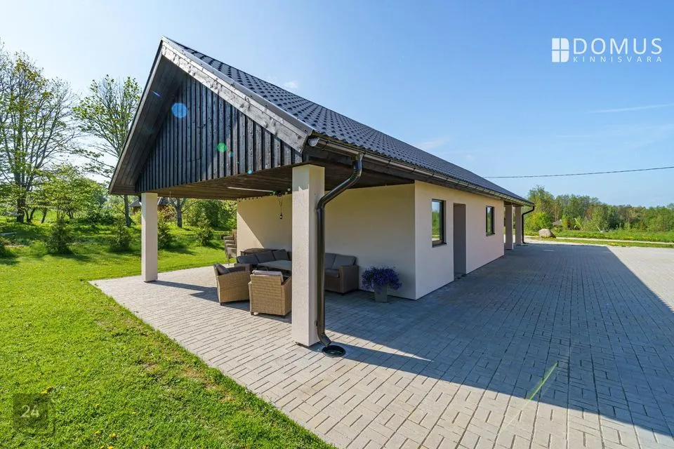 Kinnistul on nii päikseline terrass peamaja elutoast kui ka katusealune terrass kuuma päikese eest peitu pugemiseks ja koht grillimiseks. Autode jaoks varjualune, hooldatud muru. Ligipääs avalikult teelt.