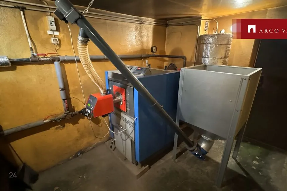 Keskküttesüsteemi osadeks on pelleti küttekatel keldris, mis kütab tubades asuvaid radiaatoreid.