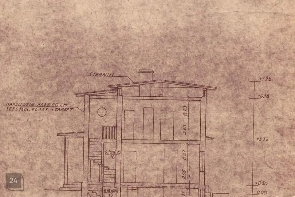 4 tuba, köök, sahver, wc, esik, kelder ja pööning