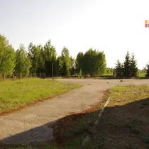 Krunt piiratud võrkaiaga, kõrghaljastus ja asfalteeritud õueala.