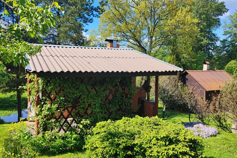 Kõrvalhoonena garaaz, puukuur, saun ja mõnus varjualune suvisteks grillimisteks.