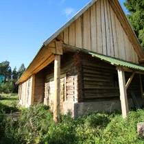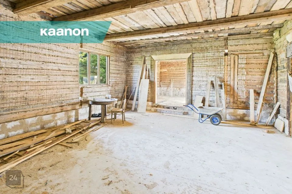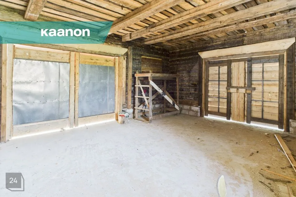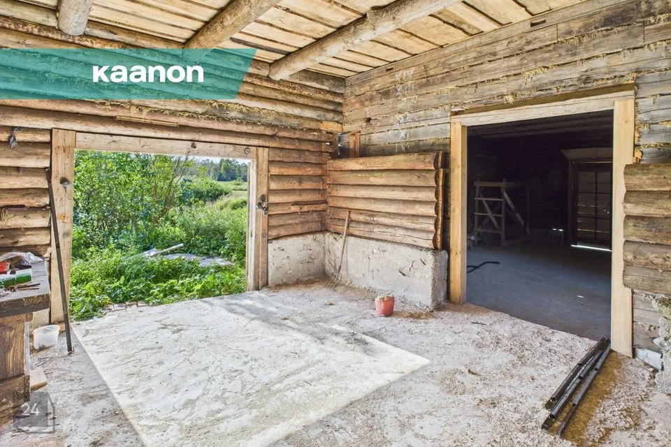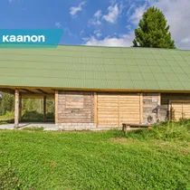 Vanadest elumaja palkidest on ehitatud aida pikendusena suur abihoone koos auto varikatusega.